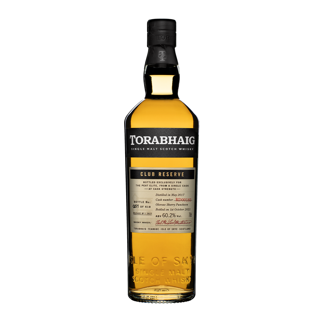 The Club Reserve No. 1 opens with gentle peat smoke, citrus zest, and dried fruits on the nose, enriched by the sweetness of vanilla and freshly cut oak. On the palate, the smokiness intensifies, mingling with grilled barbecue, black pepper, and deep notes of cedar and leather from the Oloroso Sherry Puncheon. The finish is long and warming, balancing the sherry's rich fruitiness with Torabhaig’s signature peat and spice.