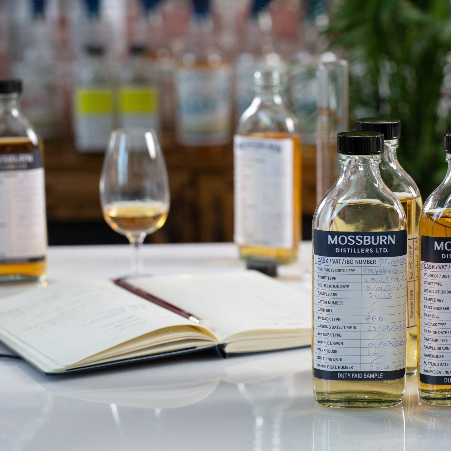 Échantillons de fûts et whiskies expérimentaux sélectionnés par nos distillateurs.